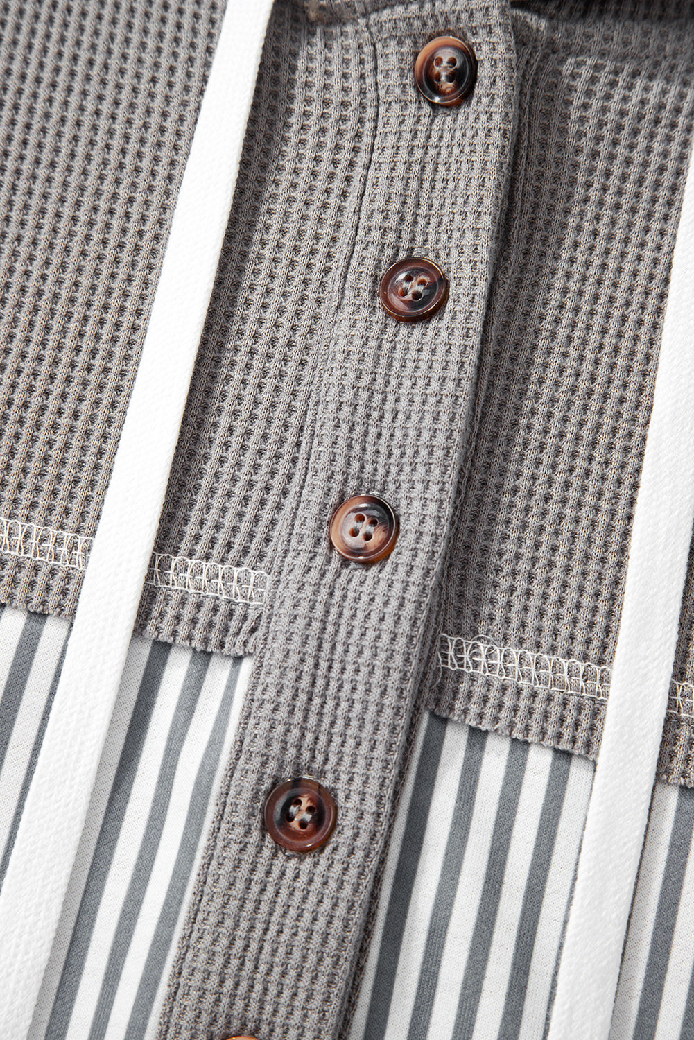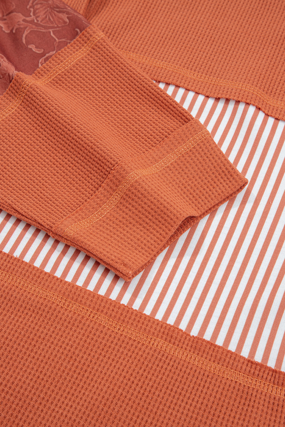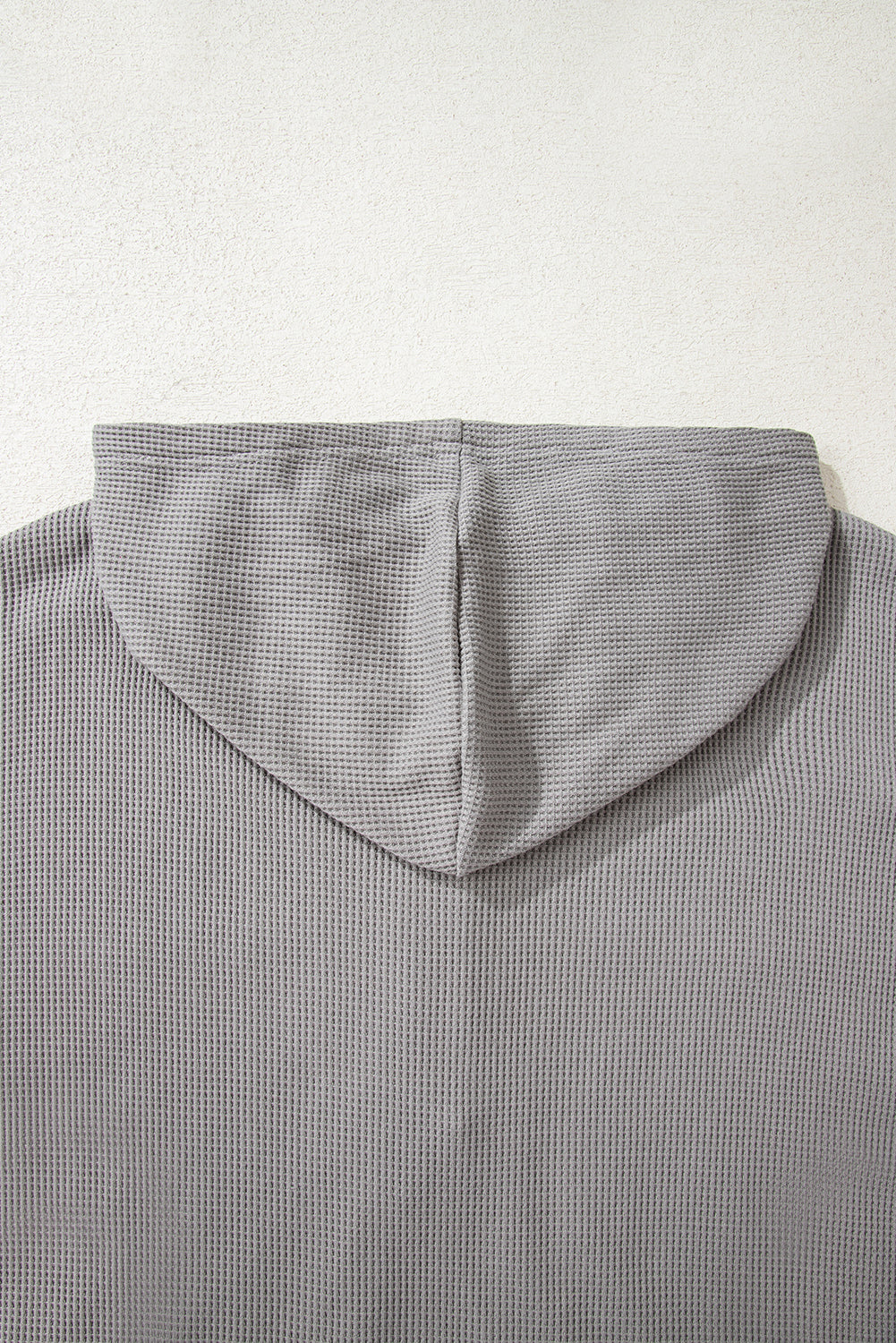 Meet Taytum Patchwork Drawstring Hooded Long Sleeve Top—effortless, flattering, and easy to style for everyday life. Waffle knit texture adds cozy warmth and a stylish casual look. Unique printed patchwork design creates eye-catching streetwear vibes. Adjustable drawstring hood adds function and laid-back flair. Long sleeves offer extra coverage for cool weather. hooded tops for women are casual and fashionable among people. Material: 75%Polyester+25%Cotton.