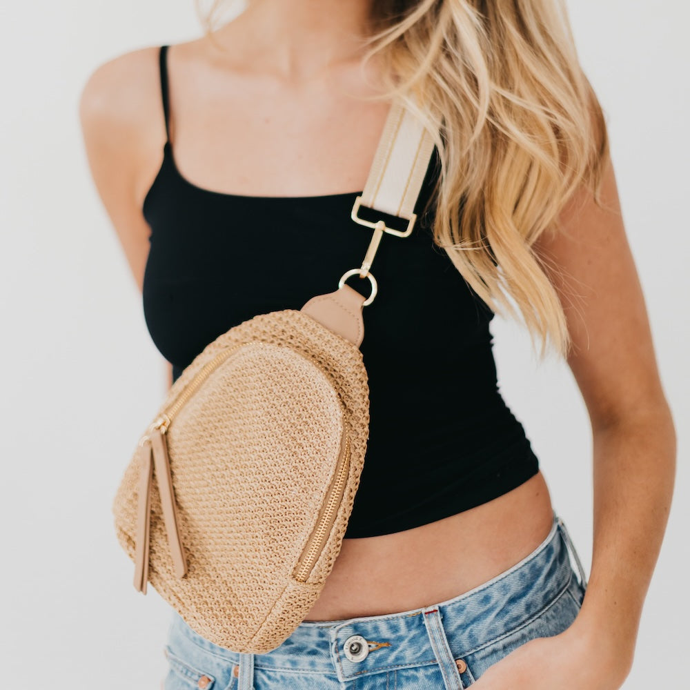 Add some fun and versatility to your summer wardrobe with our Rowan Raffia Sling Bag! Available in two stylish colors, this bag features a removable and adjustable canvas strap, interior and exterior pockets, and a sliding O-ring. Whether you wear it on your left or right, this bag will complete any look!