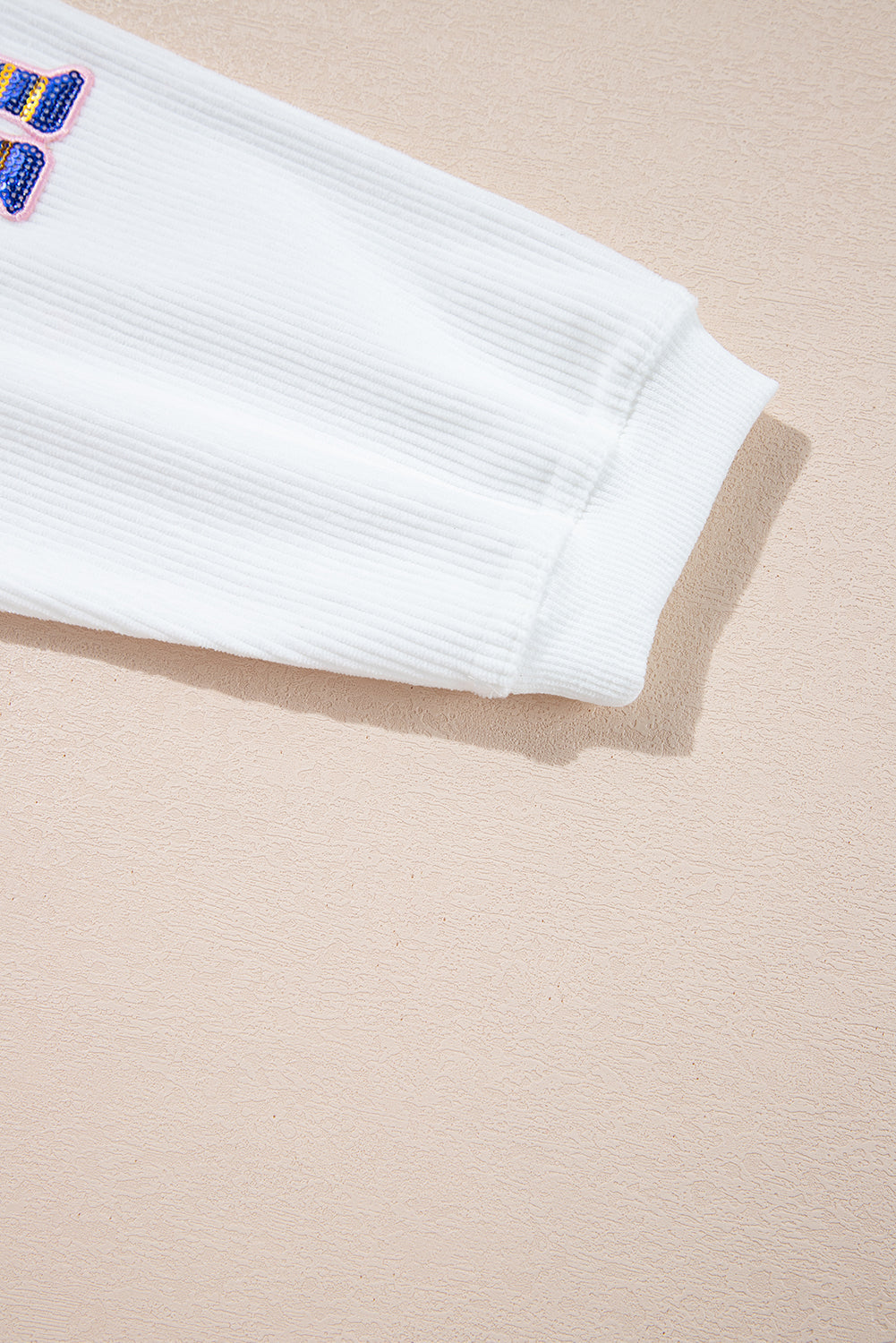 Meet Aria Christmas Fashion Corded Sweatshirt—effortless, flattering, and easy to style for everyday life. Nutcracker dolls are popular for the Christmas fashion. These sequin patched patterns are eye-catching. Made of quality fabric with a trendy corded texture. The baggy style is well-received by women of all shapes. It’s a worldwide trend to graphic sweatshirts for .