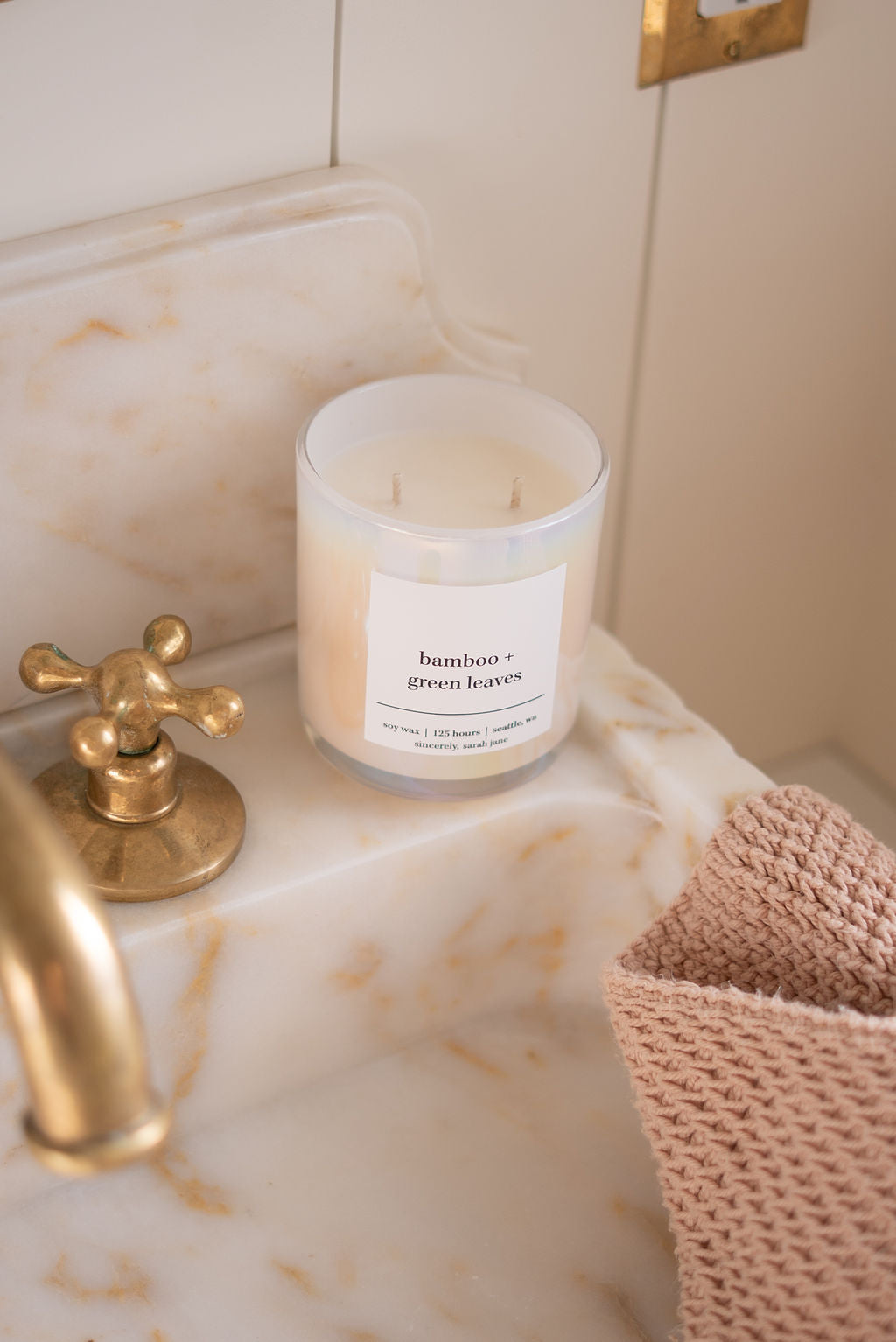 Welcome to your new favorite summer candle. Bamboo and Green leaves was so popular during our last quarterly box (in the spanish glass vessel) that we knew we had to bring it back for summer. It is like a spa in a candle. With notes of fresh bamboo and aloe, this candle is the perfect everyday burner that will be relaxing and vacation like for all the days of summer!