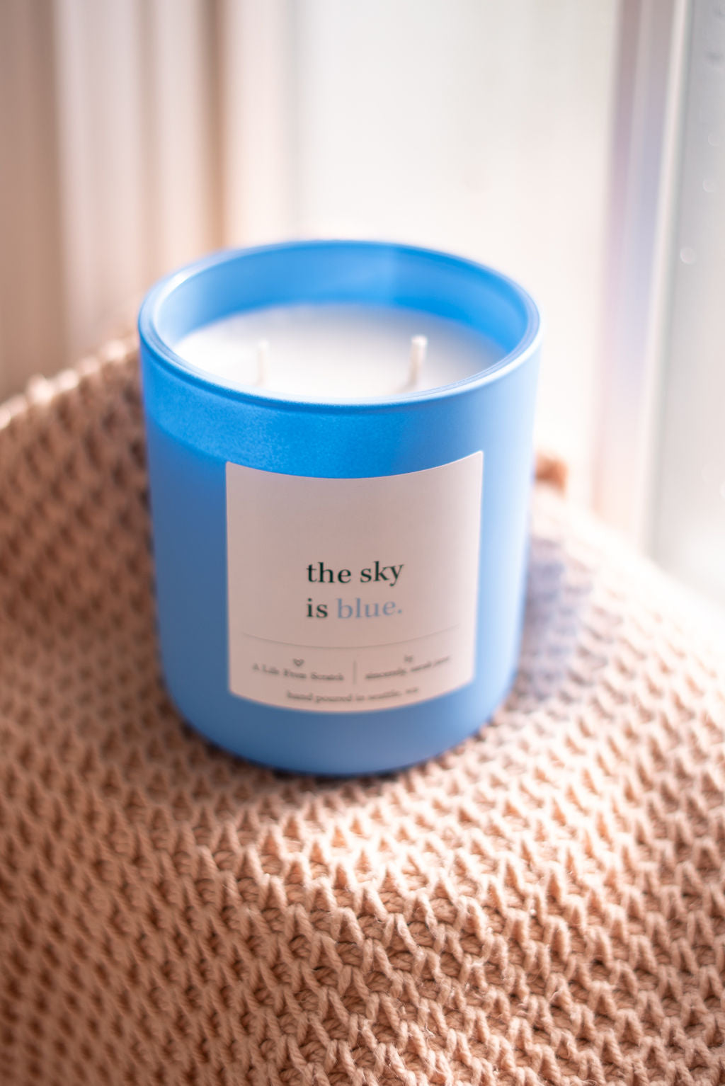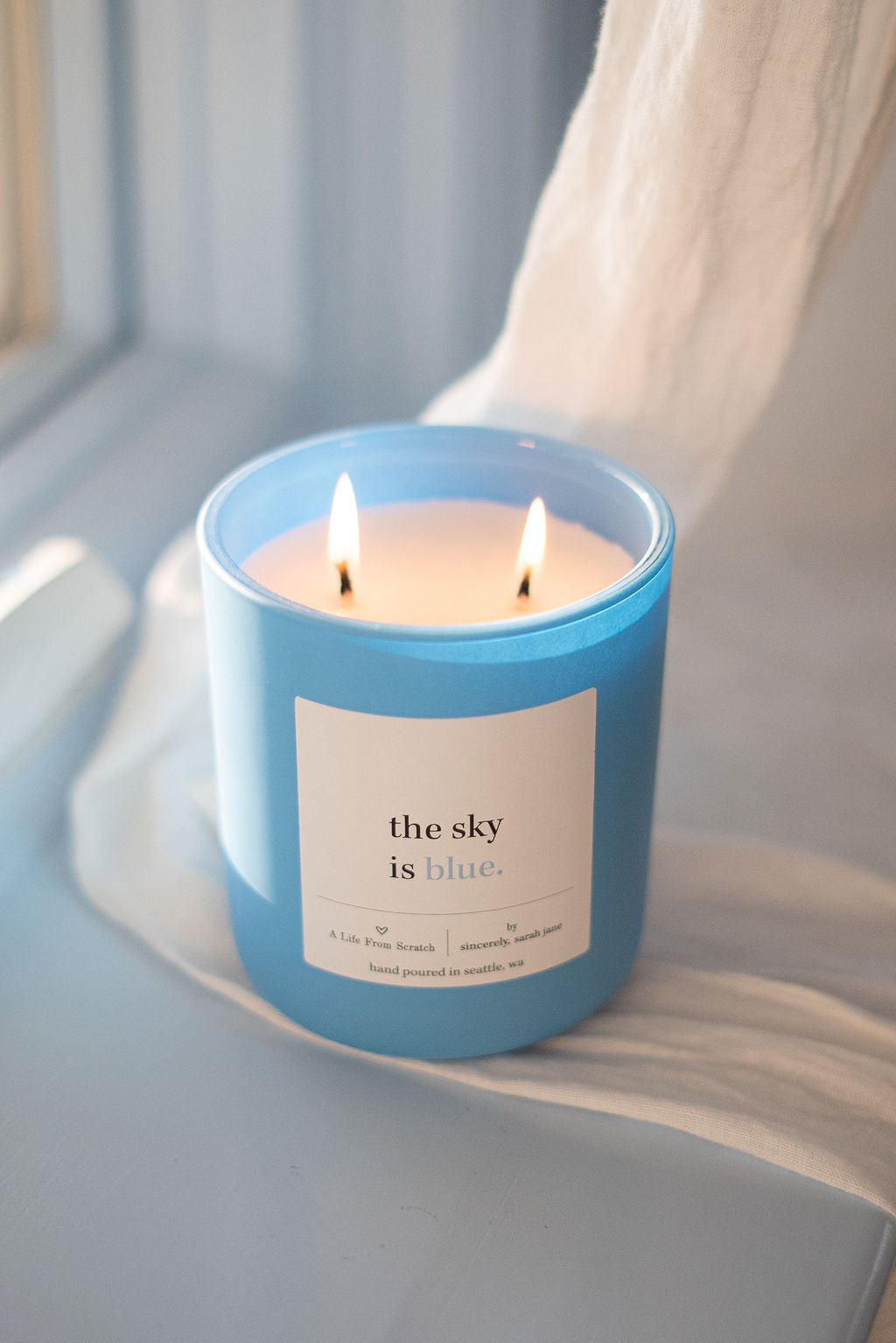 - REFORMULATED - A collaboration between Sincerely Sarah Jane x A Life From Scratch, our Sky is Blue candle is our newest addition to our Happy line. The 'Sky is Blue' means many things to many people, and we love hearing your stories about what it means to you.
