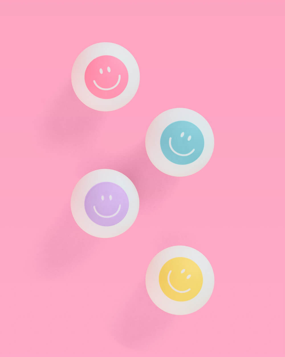 4 pastel smiley printed ping pong balls