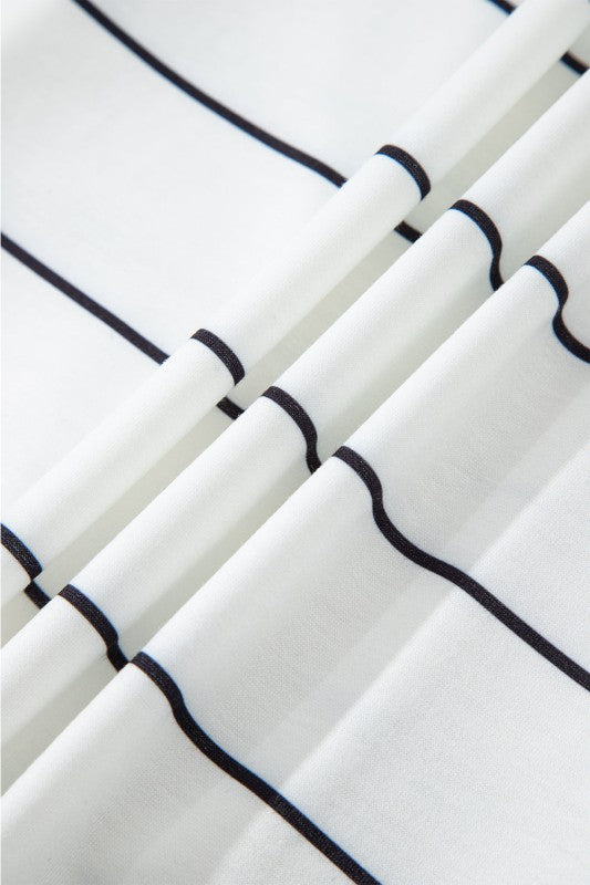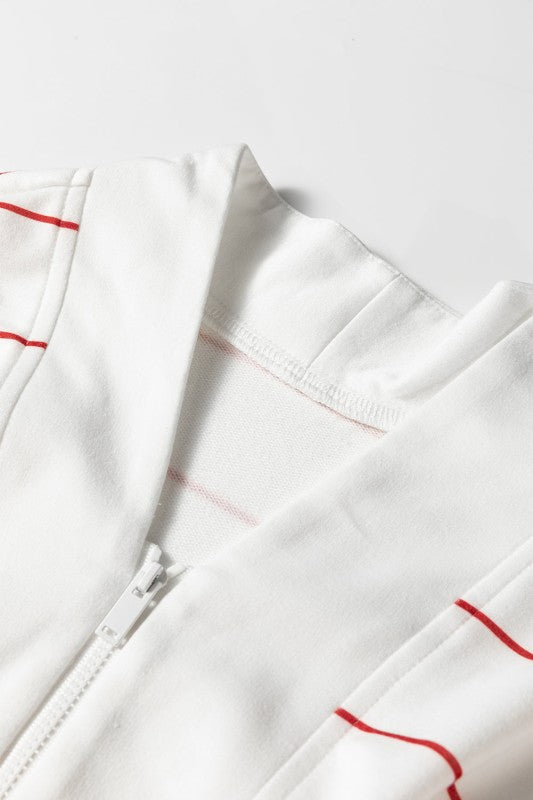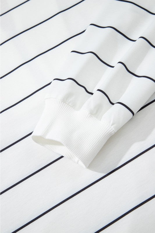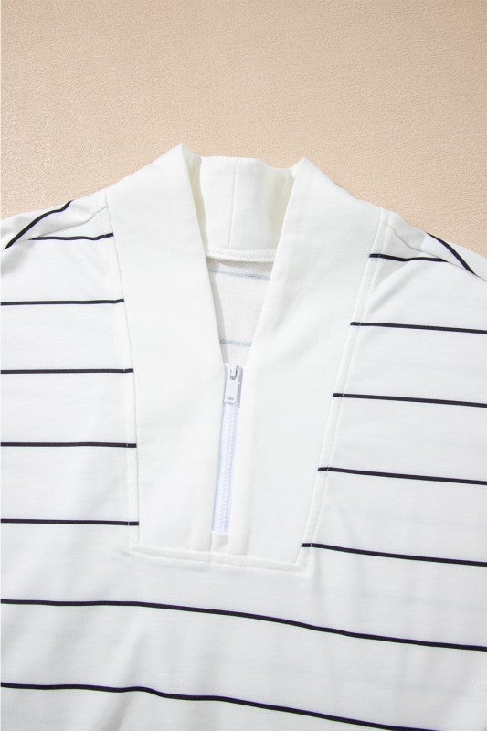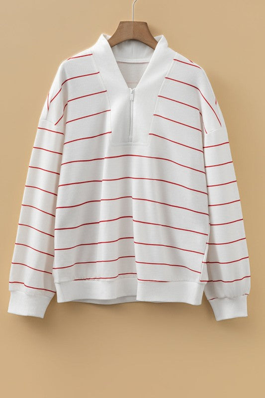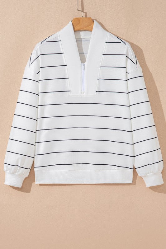 Stripe Zipped V-Neck Long Sleeve Top
